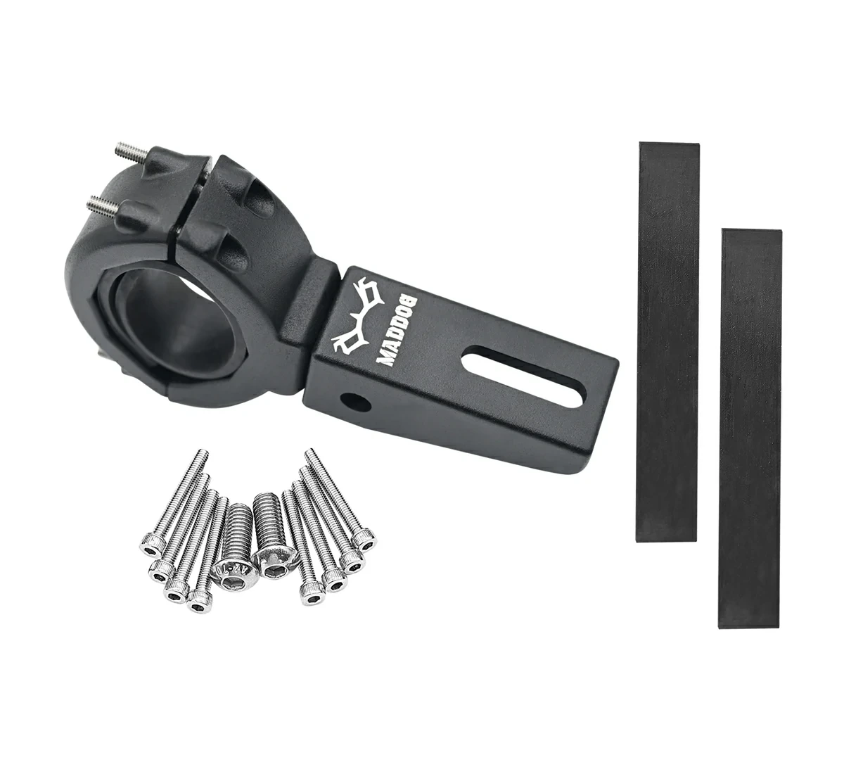 This Maddog Light Mounts allows fitment of any LED Lights to Fork tube 48 mm to 65 mm in diameter. These light mounts come with a unique rubber padding will protect from metal to metal contact and also helps the clamps to securely grip a wide range of tube diameters and include an optional, fully rotatable and 3-D Axis mounting shelf to create a super versatile and robust light mounting solution.